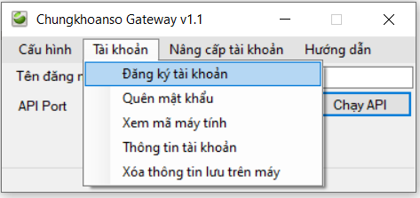 Phí dùng Chứng khoán số API Gateway: gói 1 tháng 200k, gói 3 tháng 500k, gói 6 tháng 900k, gói 1 năm 1.5 triệu.